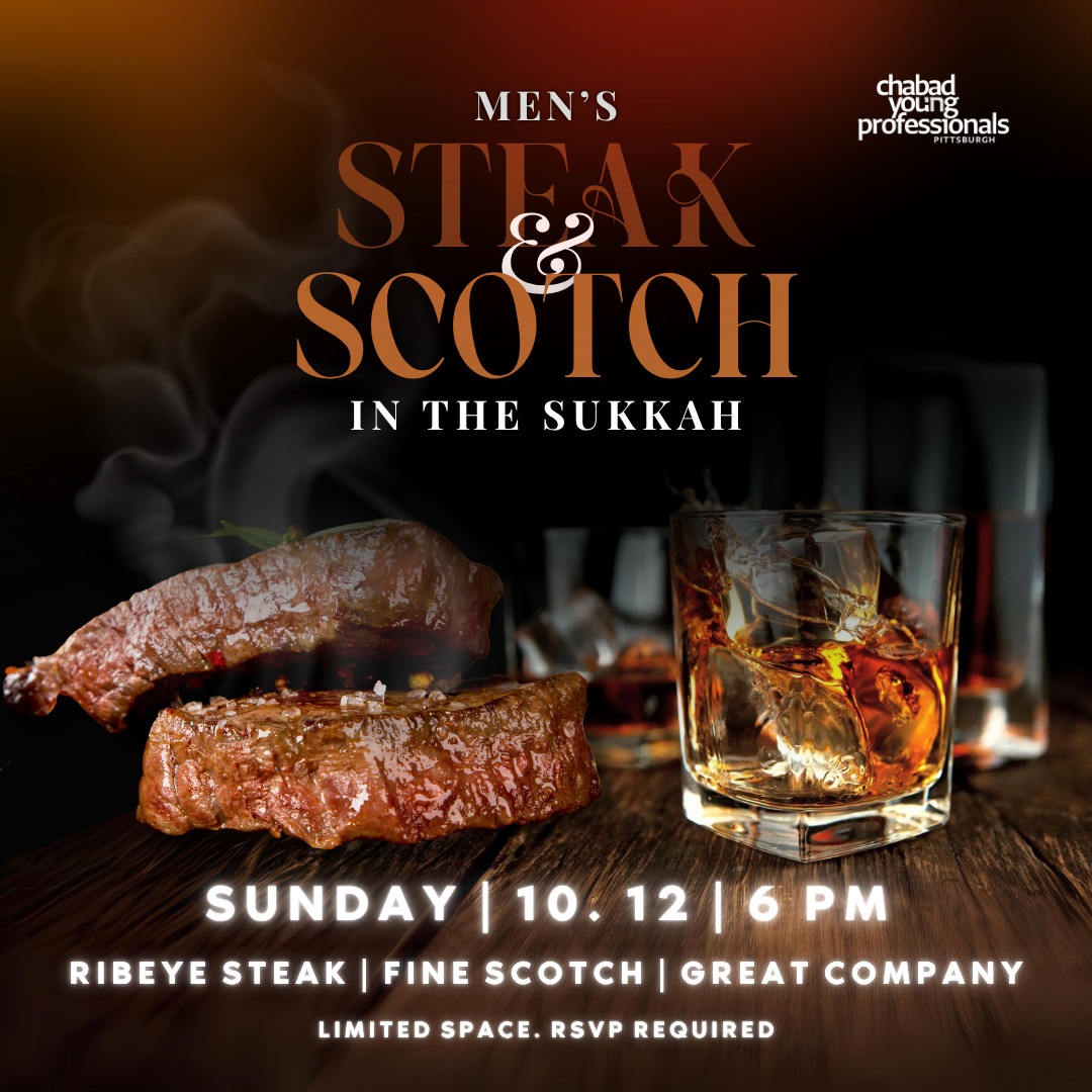 Savor ribeye steaks. Sip fine scotch. Feel the warmth of the Sukkah. Enjoy great company.